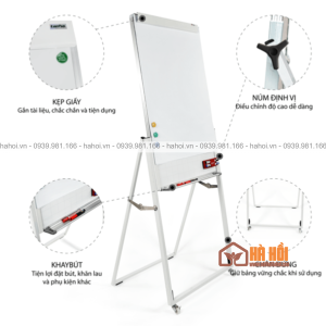 Với bảng Flipchart bạn có thể di chuyển bằng cách gấp bảng lại bằng chốt gấp gọn bảng và đẩy bảng di chuyển bằng bánh xe hết sức dễ dàng.