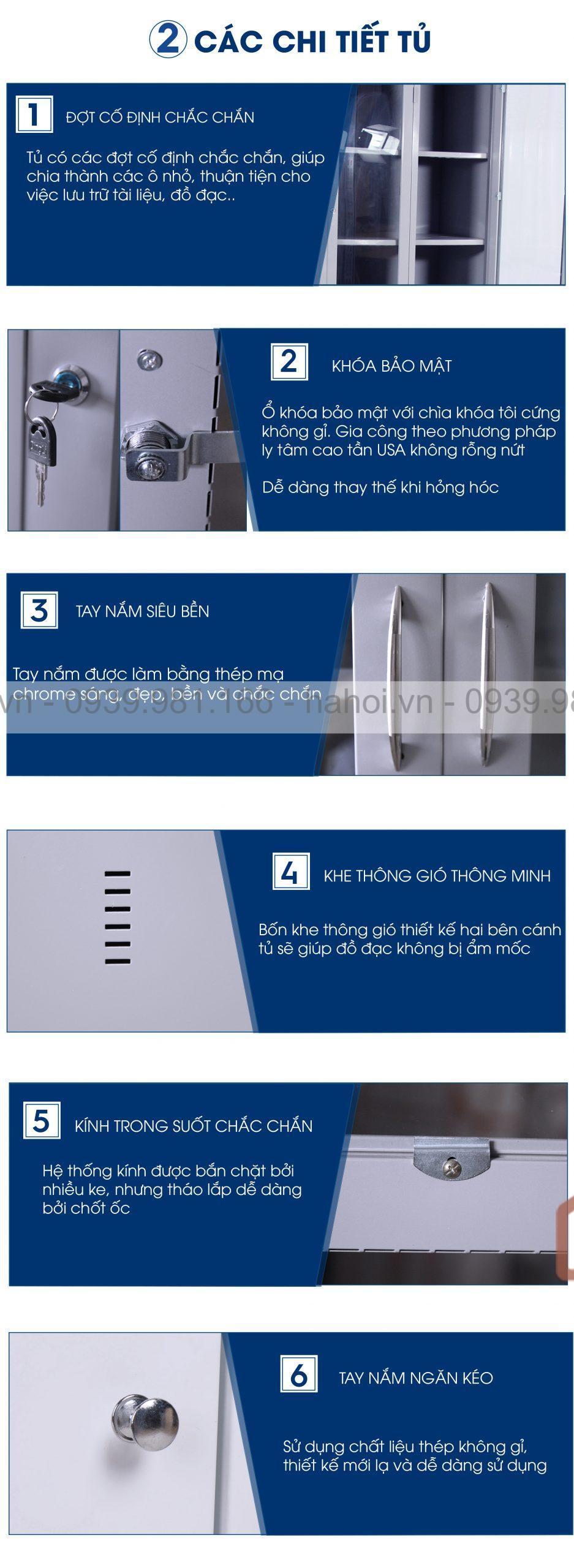 Bên trên có 3 cánh mở riêng biệt, có chìa khóa riêng. Mỗi ngăn có thêm 2 đợt.
