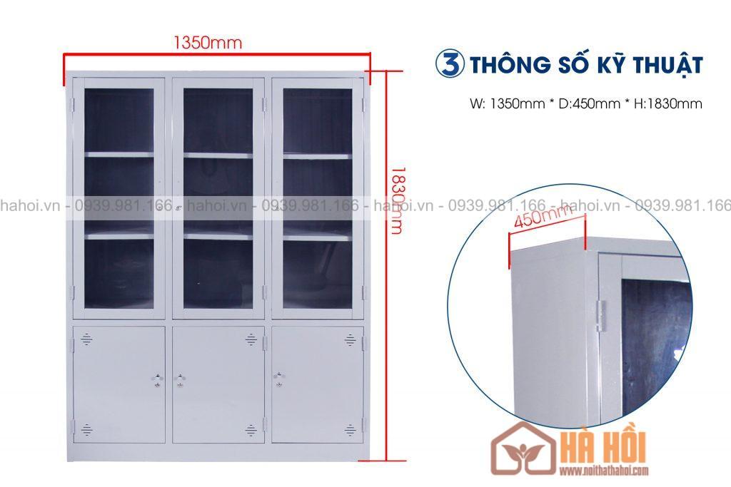 Tủ sắt tài liệu 3 buồng kính K6K